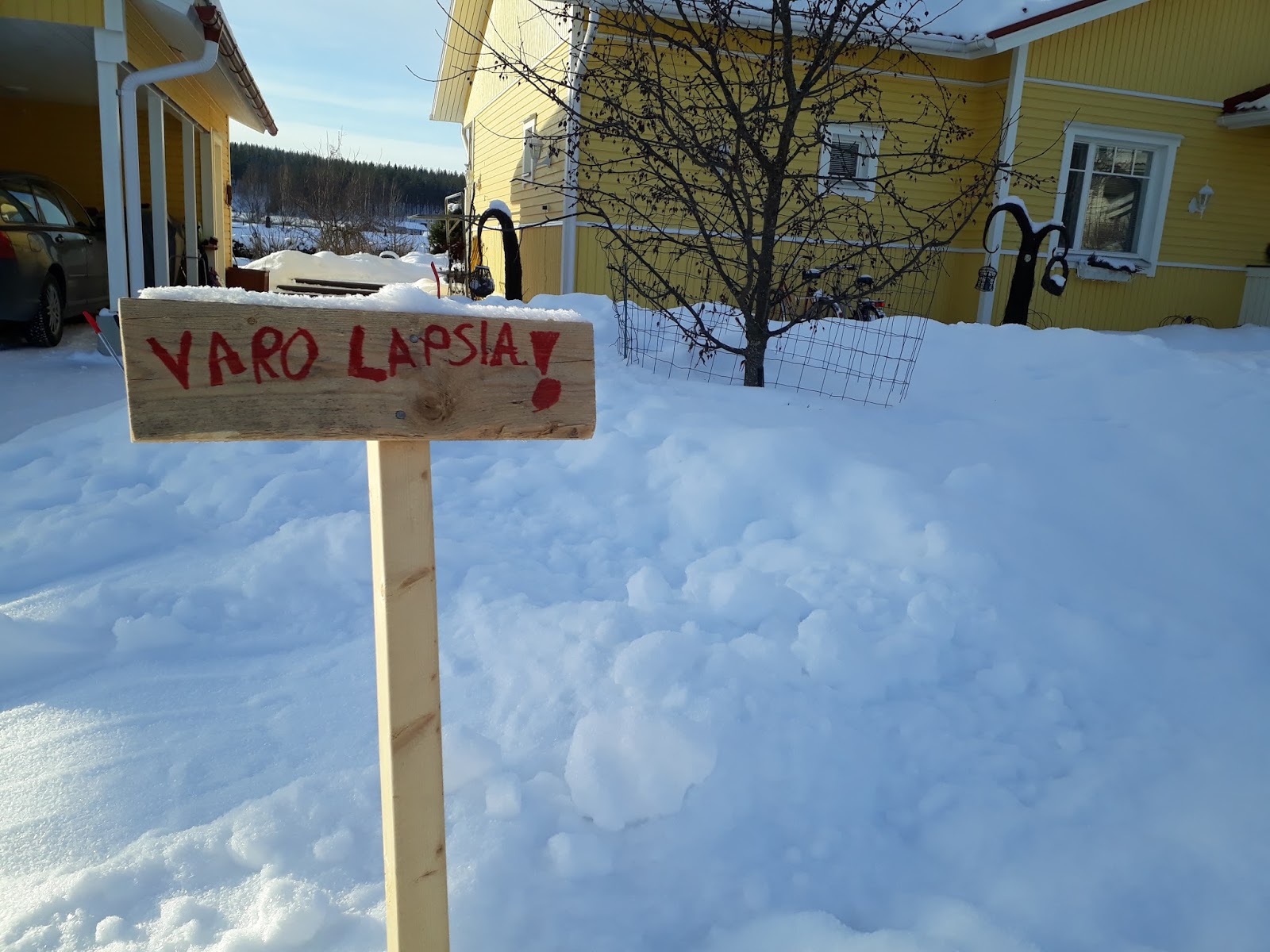 Keskitalven on töröttänyt nuoriso-osaston pystyttämä VARO LAPSIA -kyltti lumikasan kyljessä. Jos ei kohta tule keramiikkauunista kelvollista tavaraa ulos, saa lapsi kyltissä ruksit päälle ja tilallensa "kärttystä ämmää".